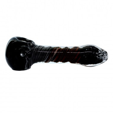 Pipa tipo spoon compacta (3.5”) hecha en borosilicato Pyrex grueso para rotación diaria: tiro directo y controlado con carburador lateral y cazoleta profunda para flores secas. Acabado inside-out con base negra y hélice naranja/blanco que resalta bajo la capa de vidrio, manteniendo sabor neutro y alta resistencia térmica.
