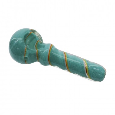 Pipa tipo spoon hecha en borosilicato (Pyrex) de alto espesor, diseñada para rotación intensiva con excelente resistencia térmica y sabor neutro. Su formato ultracompacto, con largo real medido de 8 cm aprox., permite un tiro directo mediante carburador lateral, ideal para sesiones discretas y transporte fácil. La cazoleta profunda garantiza una combustión homogénea con carga adecuada de flores secas. El acabado incluye un bowl en tono turquesa sólido, decorado con líneas espirales finas en naranja y amarillo que recorren el cuerpo de forma continua. El diseño ergonómico con leves curvas y boquilla cilíndrica redondeada facilita el agarre y uso prolongado. Una pieza práctica, visualmente atractiva y resistente, pensada para catálogos de pipas de vidrio y accesorios compactos para hierbas secas.