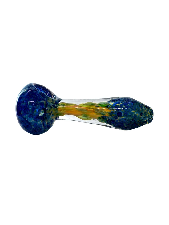 La Pipa Pyrex Torque 88 - Está fabricada en borosilicato (Pyrex) para un sabor limpio y alta resistencia al calor. Su diseño tipo spoon cuenta con un hornillo profundo y carburador lateral que permite regular el flujo de aire para caladas suaves y controladas. El cuerpo presenta un trabajo artesanal con base transparente que revela una combinación única: cabeza en azul cobalto, un “núcleo” interno en tonos ámbar y amarillo con aletas orgánicas, y una cámara final con efecto moteado azul que aporta volumen y dinamismo. Ideal para quienes buscan una pieza llamativa, funcional y con gran presencia visual.