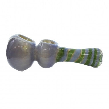 Pipa tipo spoon hecha en borosilicato (Pyrex) de alto espesor, diseñada para rotación intensiva con gran resistencia térmica y sabor neutro. Su formato compacto, con largo real medido de 14 cm aprox., ofrece un tiro directo y cómodo gracias al carburador lateral, ideal para sesiones rápidas o de uso personal. La cazoleta doble y profunda permite una combustión uniforme de flores secas con carga equilibrada. El acabado integra bowl perlado en tonos ámbar, cámara central con vetas internas opalinas y boquilla cilíndrica decorada con espirales azul oscuro, aportando contraste visual, firmeza estructural y excelente presencia en vitrinas o catálogos de vidrio para fumar. Una pieza funcional y llamativa para ampliar la oferta de pipas de vidrio y accesorios para consumo de hierbas con limpieza sencilla.